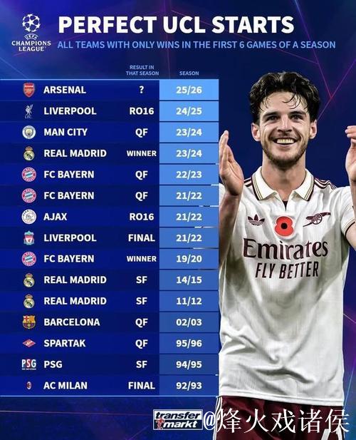 欧冠小组赛战至尾声,本赛季又诞生了一支“六连胜之师”,也让一项颇具魔性的数据再次被翻出——在欧冠历史上,单赛季前6战全胜的球队一共只出现过14次,但最终能够一路高歌猛进,捧起大耳朵杯的,只有区区两支球